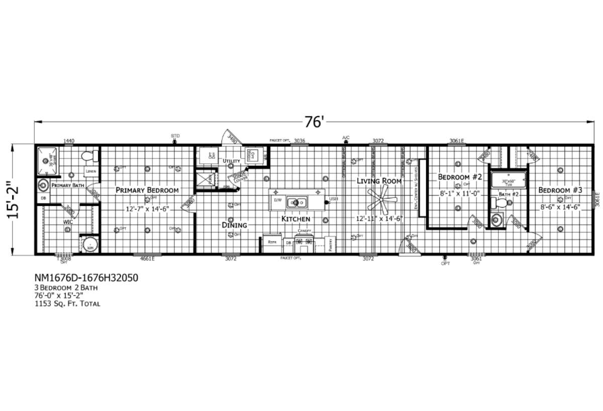 Sq ft: 1153 W x L: 15' 2" x 76' 0"