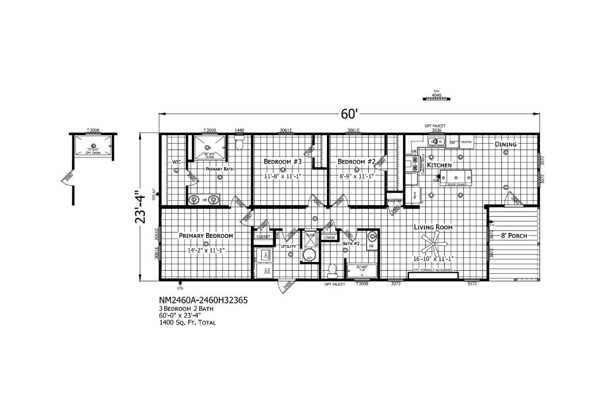 Sq ft: 1400 W x L: 23' 4" x 60' 0"