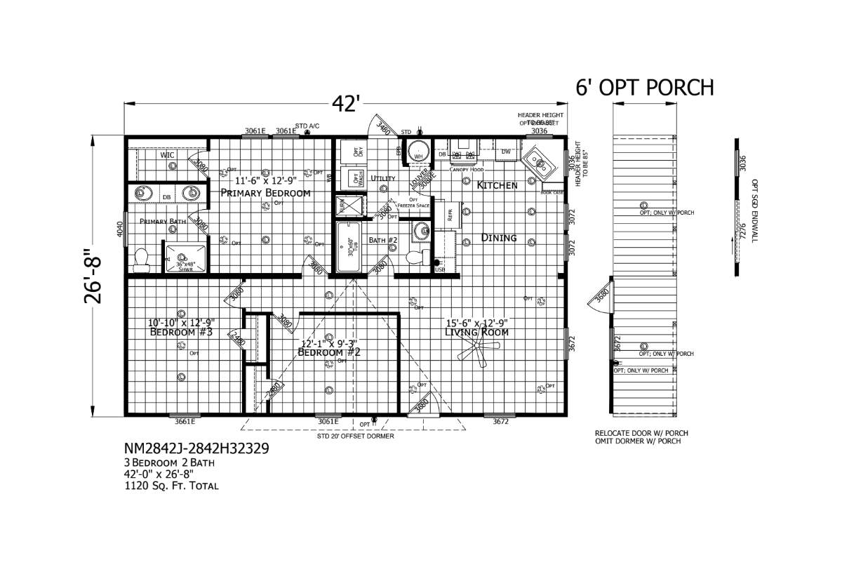 Sq ft: 1120 W x L: 26' 8" x 42' 0"